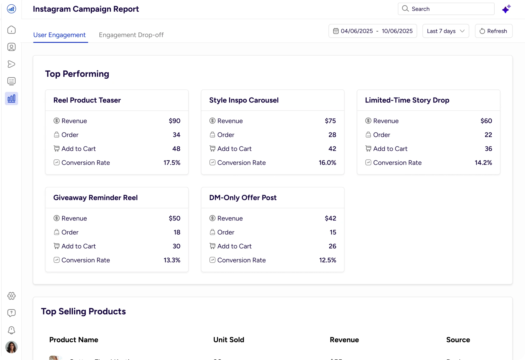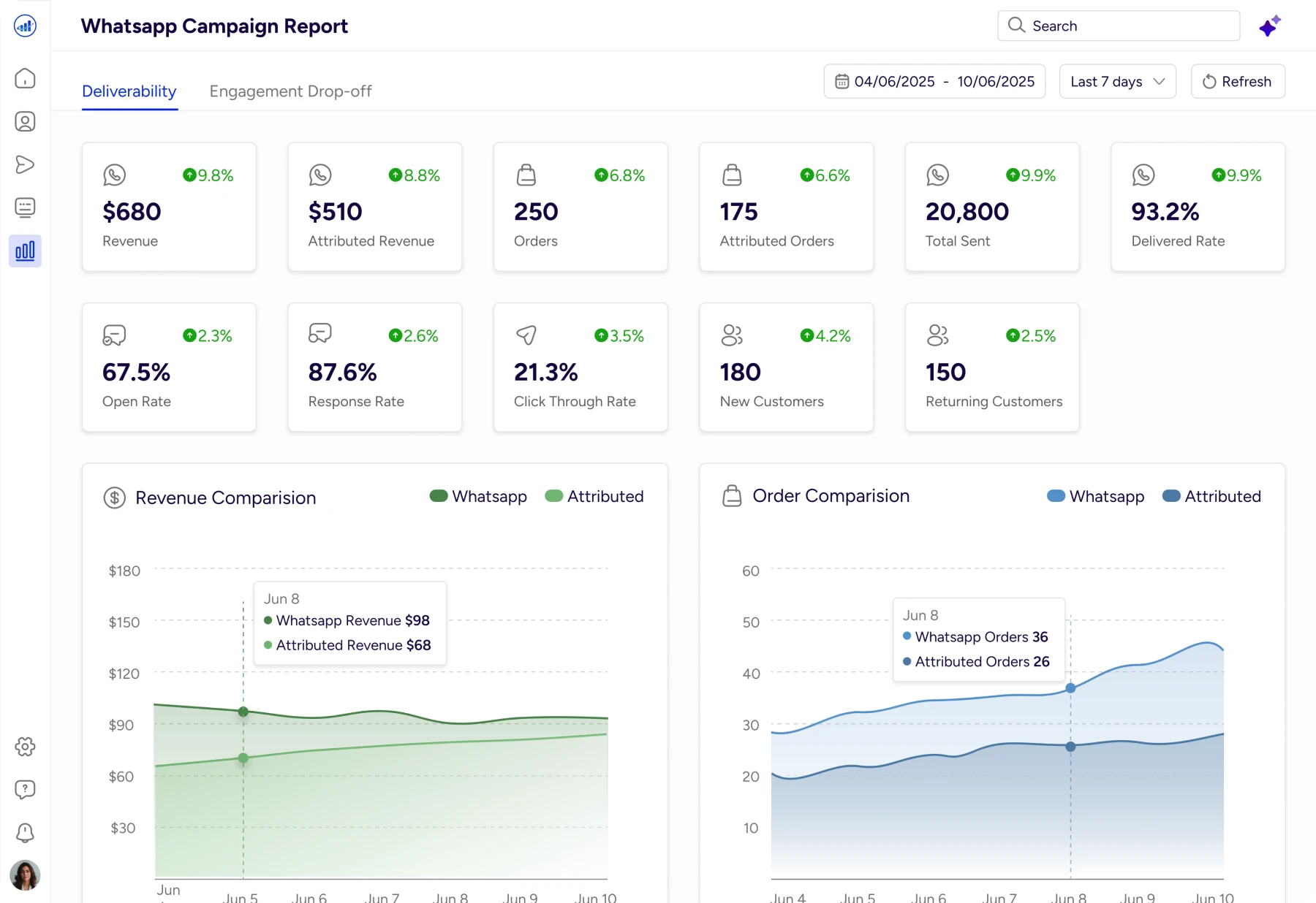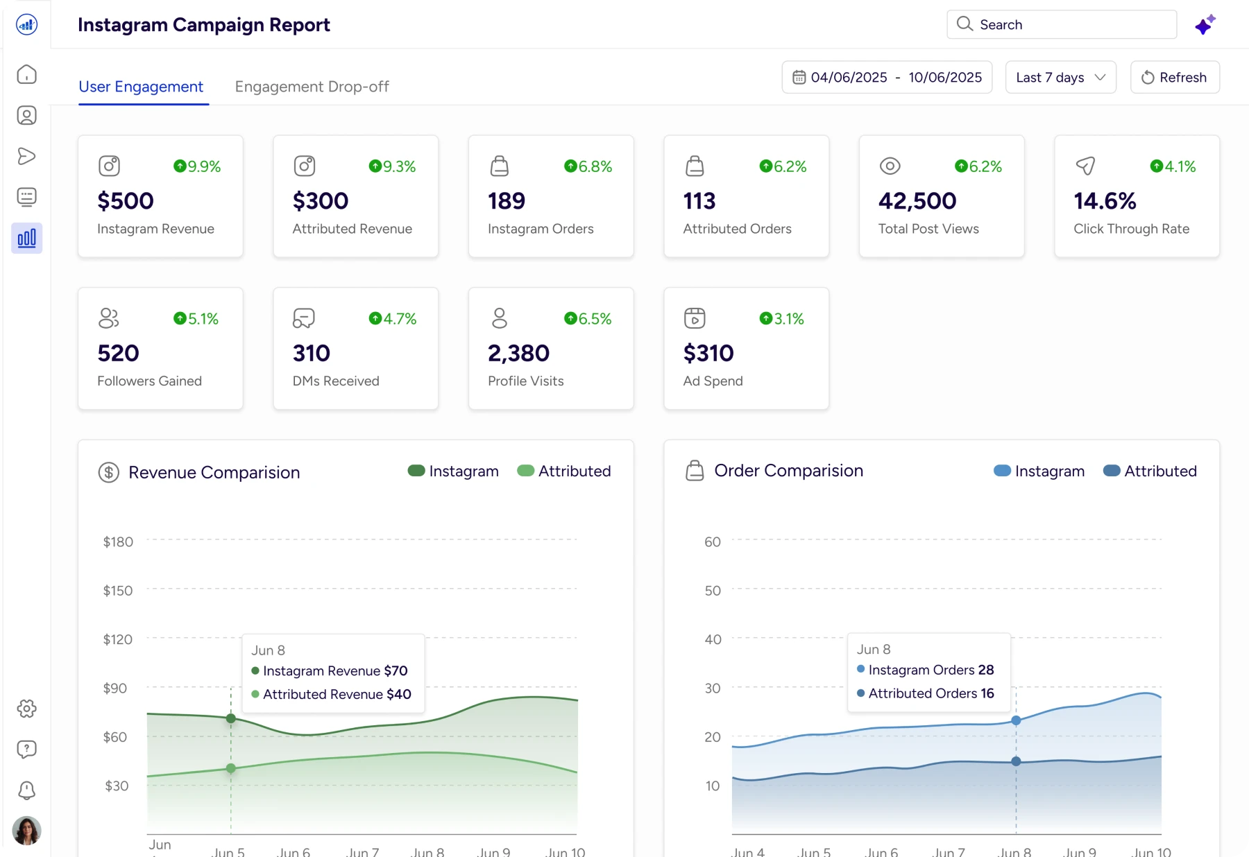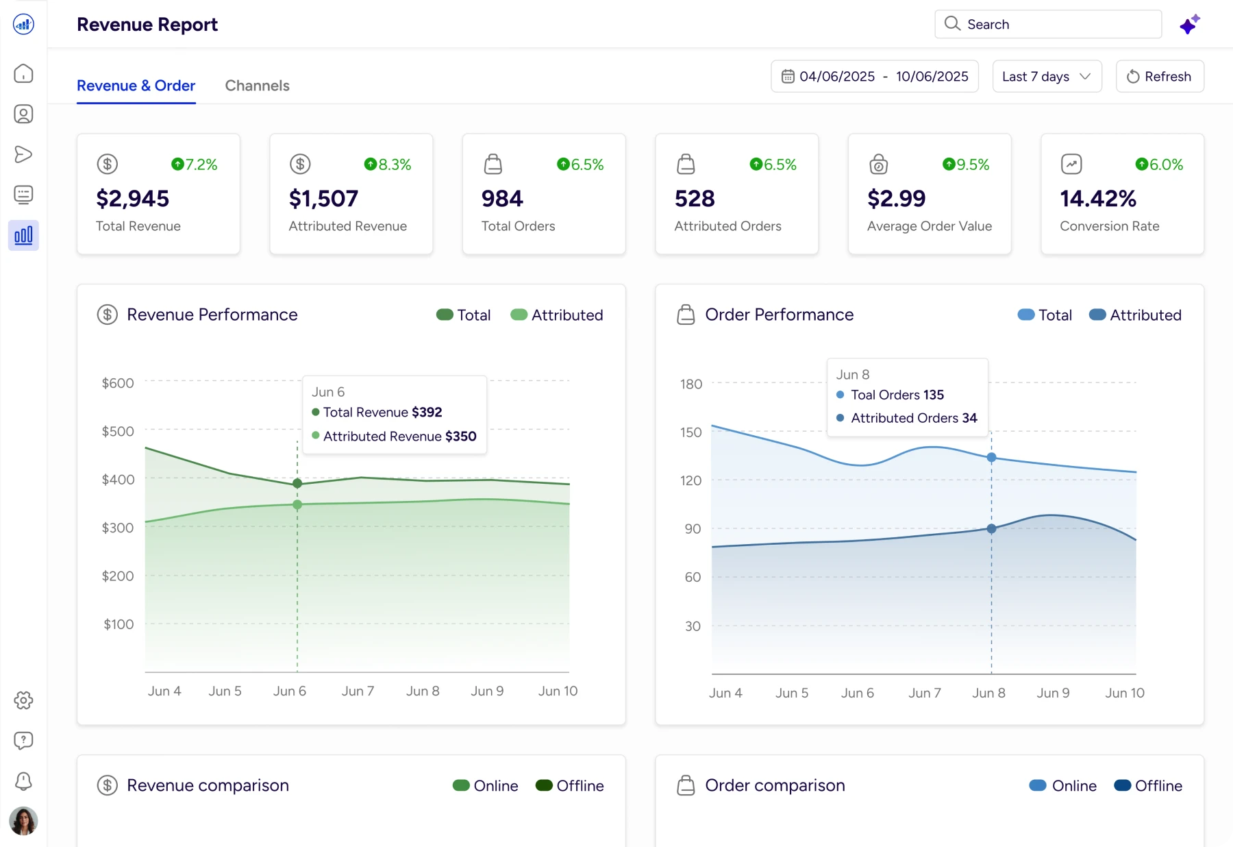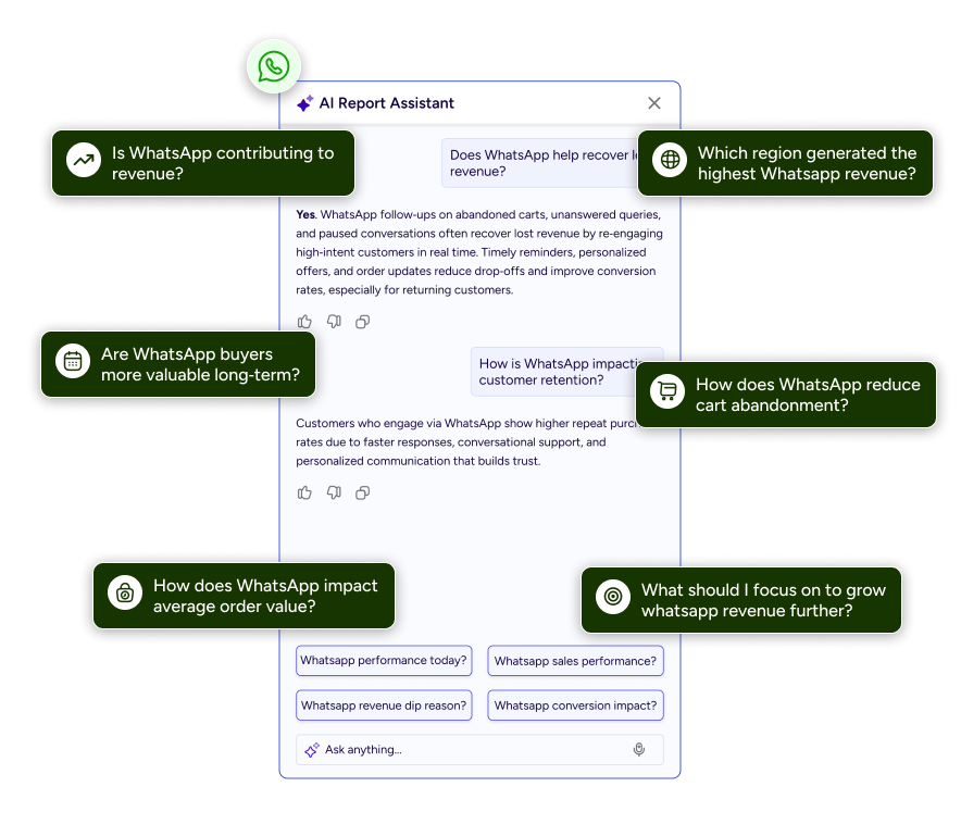 Gives an instant snapshot of revenue, orders, and conversion trends, with AI explaining why performance changed.