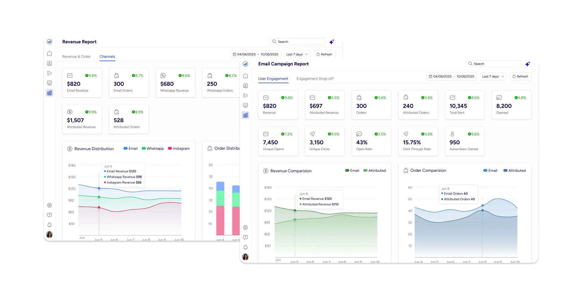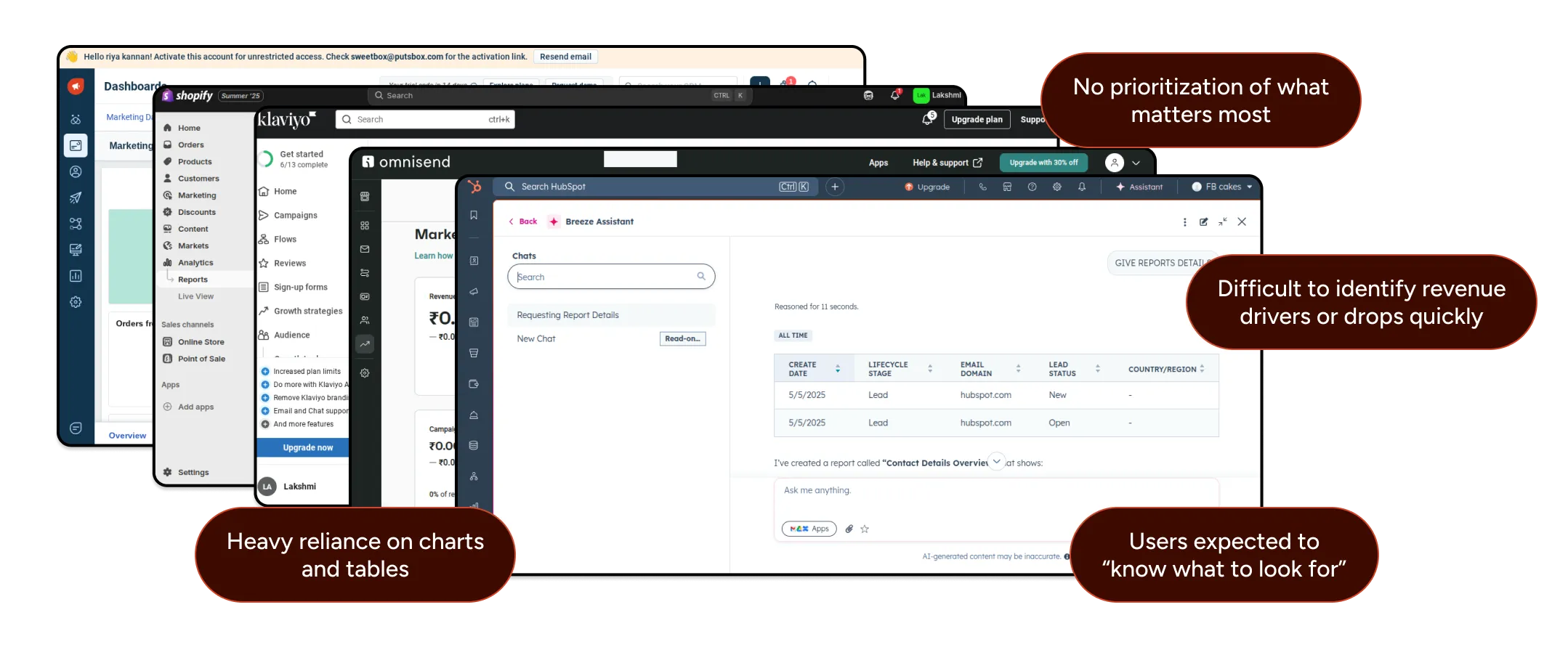 Before designing the Reports, I evaluated existing solutions used by e-commerce brands. I analyzed tools like Zoho CRM, Shopify, Hubspot, Klaviyo and Freshmarketer.