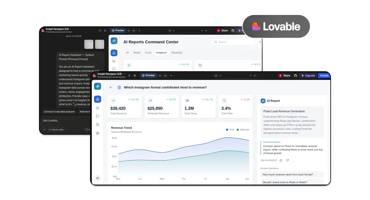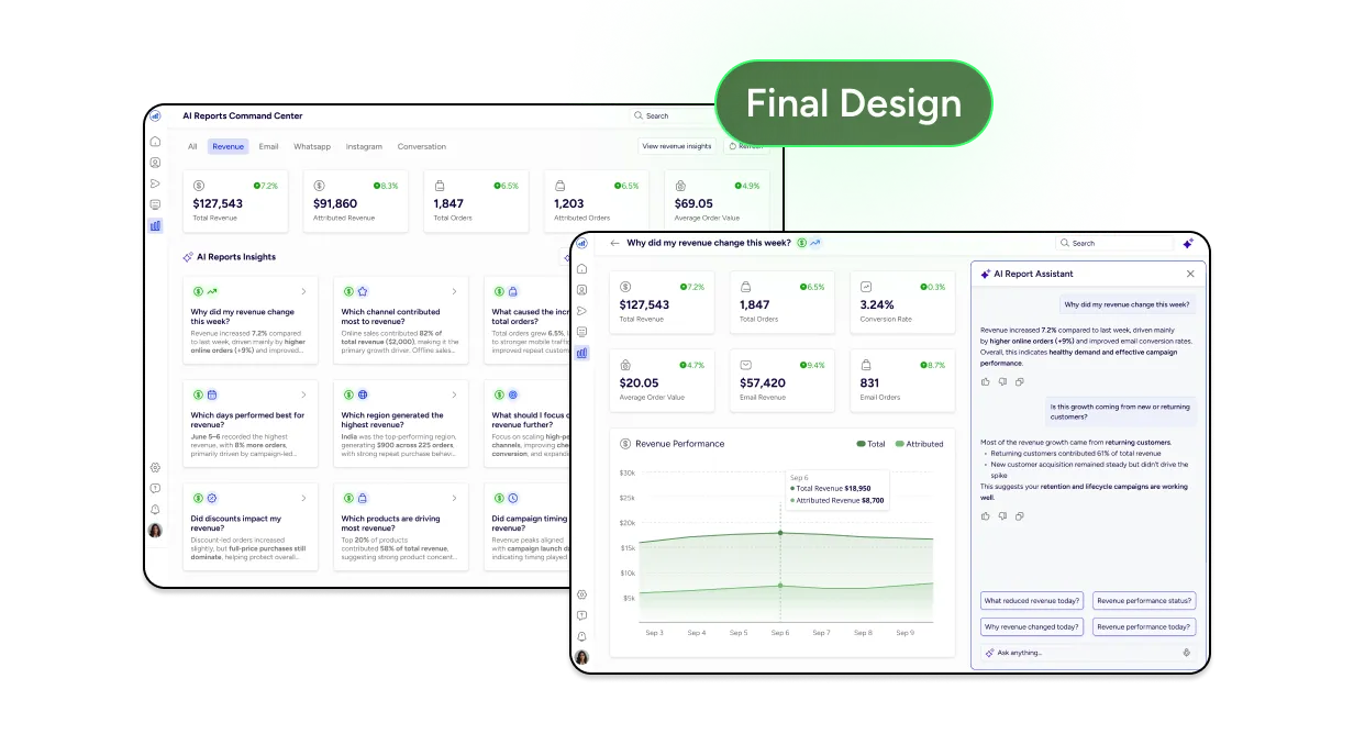 What began as static reports evolved into an interactive insight layer. By combining structured data, thoughtful UX and AI‑assisted explanations, the design transforms reports from passive dashboards into active decision tools.